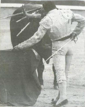 Si en primer lugar, nos referimos a la muleta, y en particular al pase natural, ese que se ejecuta con la mano izquierda, de frente y centrado a las astas del toro, con el engaño adelantado y paralelo a sus pitones; asumiendo para el caso una tarde sin brisa, la tela, flácida, tal es su estructura, penderá perpendicular a la arena. Y si el torero, tomando la muleta por el centro del estaquillador (su centro de gravedad) incita al toro a arrancarse, y una vez llegado este a jurisdicción, templado y mandado se lo lleva humillado hacía afuera y hacía atrás, haciéndole describir durante el recorrido una trayectoria circular, sencillamente la tela, en su desplazamiento, a excepción de sus pliegues internos y externos, que pueden moverse libremente, como el aleteo de una mariposa, ha de conservar hasta el remate, su plano perpendicular a la arena, tal cual, como se encontraba en el momento del cite.